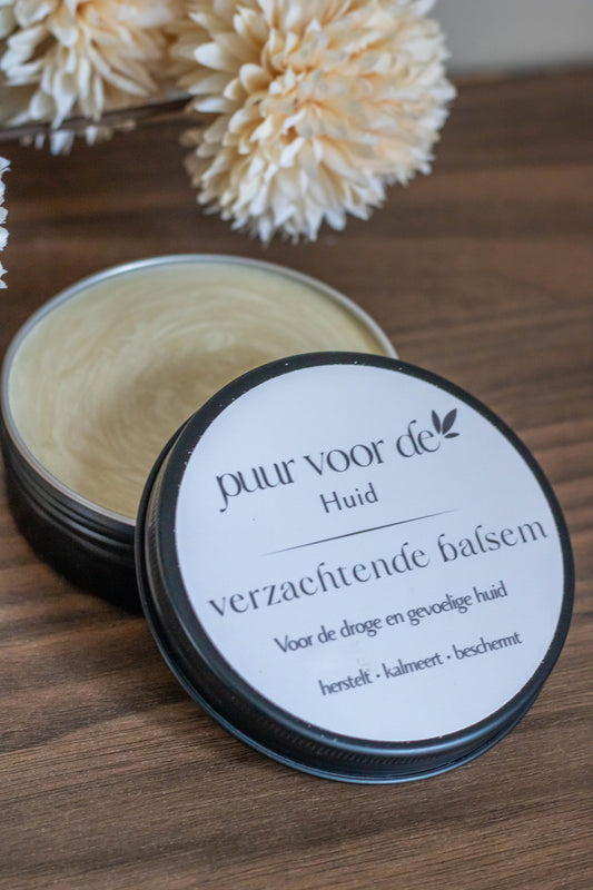 Onze verzachtende balsem is ontwikkeld voor de droge en gevoelige huid die behoefte heeft aan extra verzorging en comfort. Met 100% natuurlijke ingrediënten zoals shea butter, arganolie en druivenpitolie biedt deze rijke balsem intensieve voeding en helpt zij de huid zacht en soepel te houden.